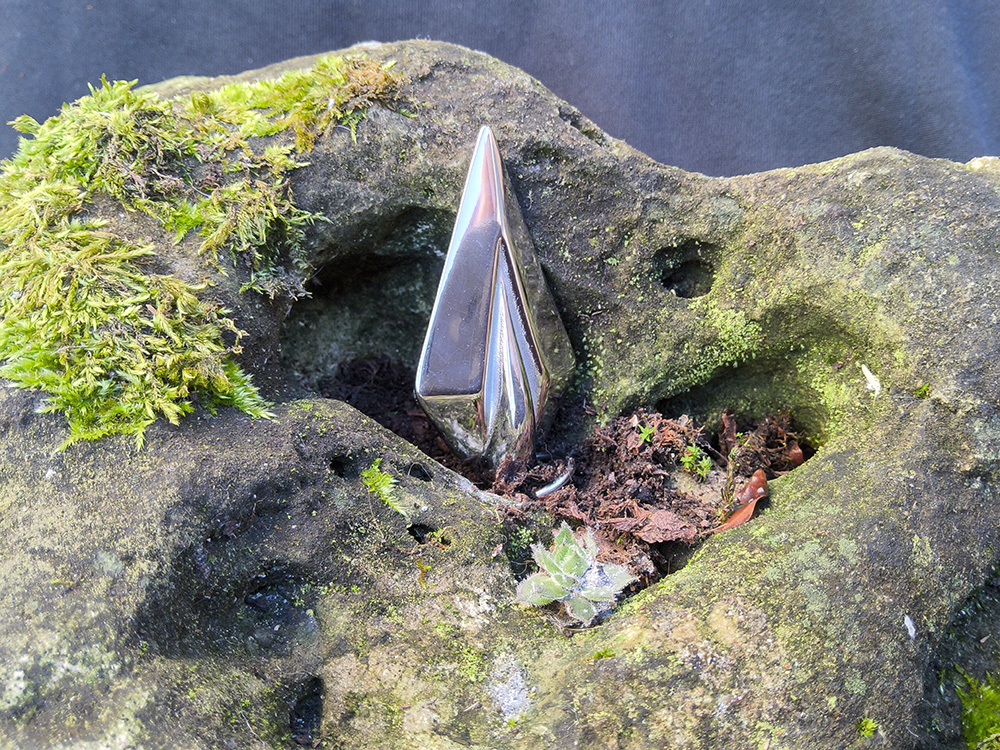 Gleich dem Kopf einer kräftigen Stoßlanze der Bronzezeit. Eine archaische Form wie ein stiller Gedanke, scharf, zielführend und unbeirrbar.
